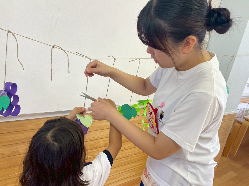 今日は、お姉さん先生とぶどう狩り♬一昨日、自分で作ったぶどうを収穫しました!とっても個性的で美味しそうなぶどうが獲れたね❤P.S運動会まであと4日・・本番まで子ども達のモチベーションを上げていきます。本番の演技をぜひ楽しみにしていてください✨