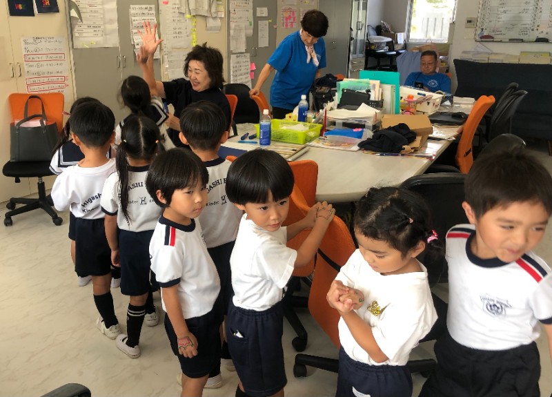 先週覚えた「Go away!」をしっかりと使いこなしハロウィンの曲で大盛り上がり!みんな大好き英語教室はいつもあっという間です^_^PS.お外でしっぽ取りゲーム❤️またみんなでしようね♫《ゆま》