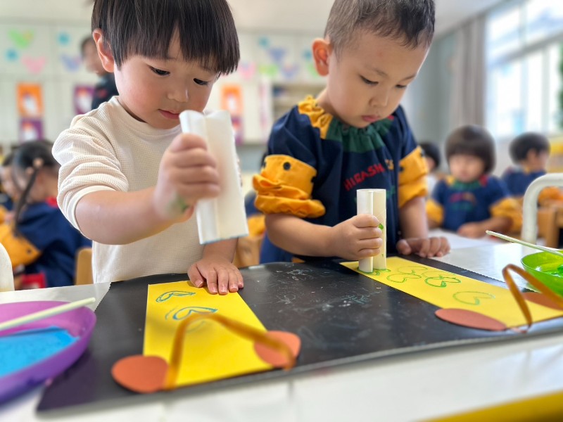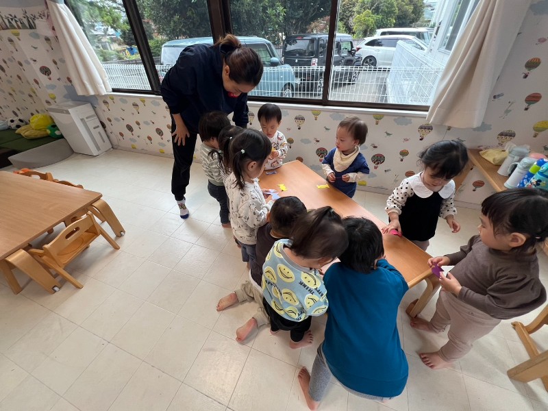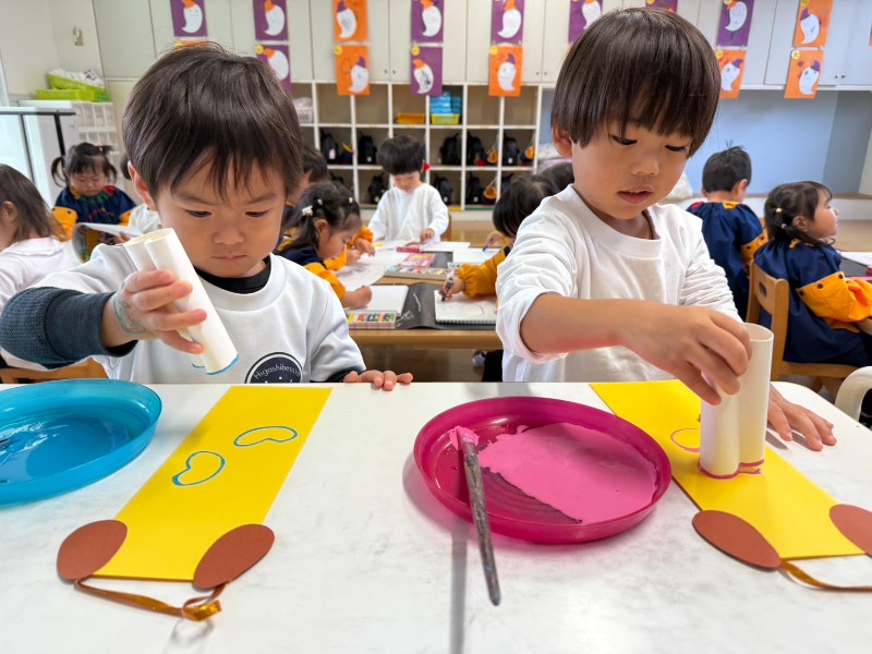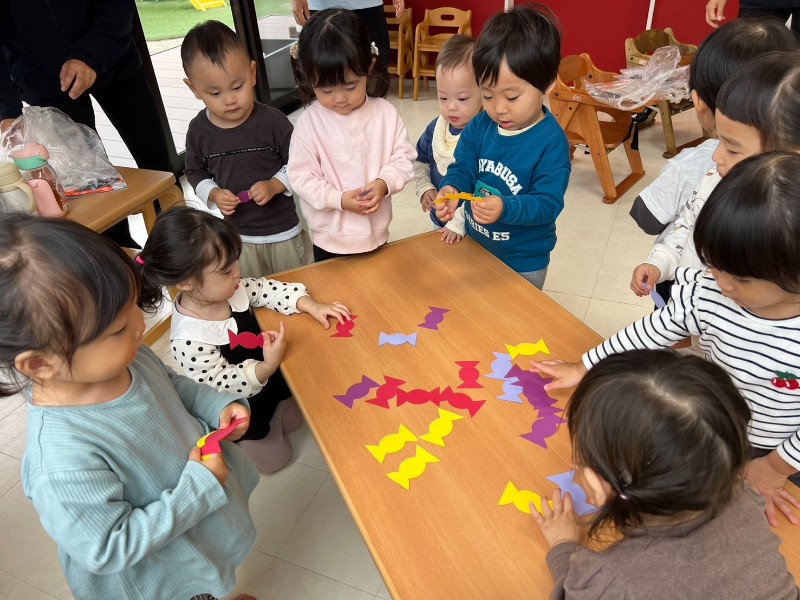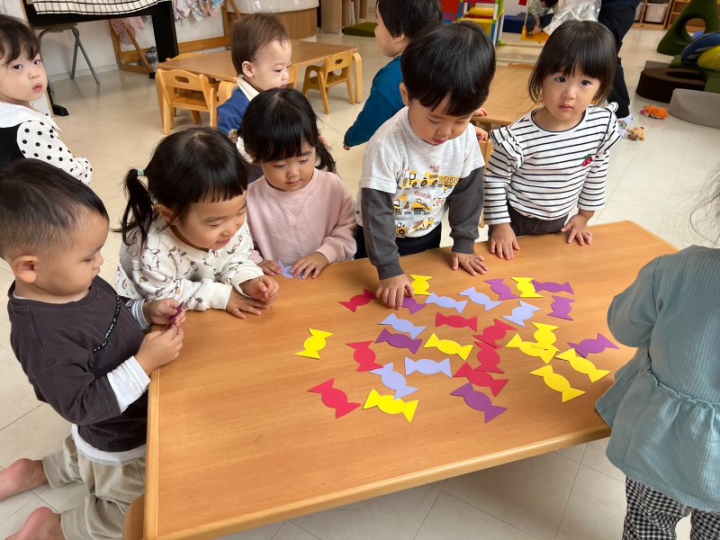 11月15日は七五三の日!千歳飴の袋づくりをしました!!「千歳飴は白と赤の2色なんだよ!」とお話をすると、「美味しいの〜?」なんて可愛いつぶやきも聞こえてきました❤完成が楽しみだね♪《ゆか》