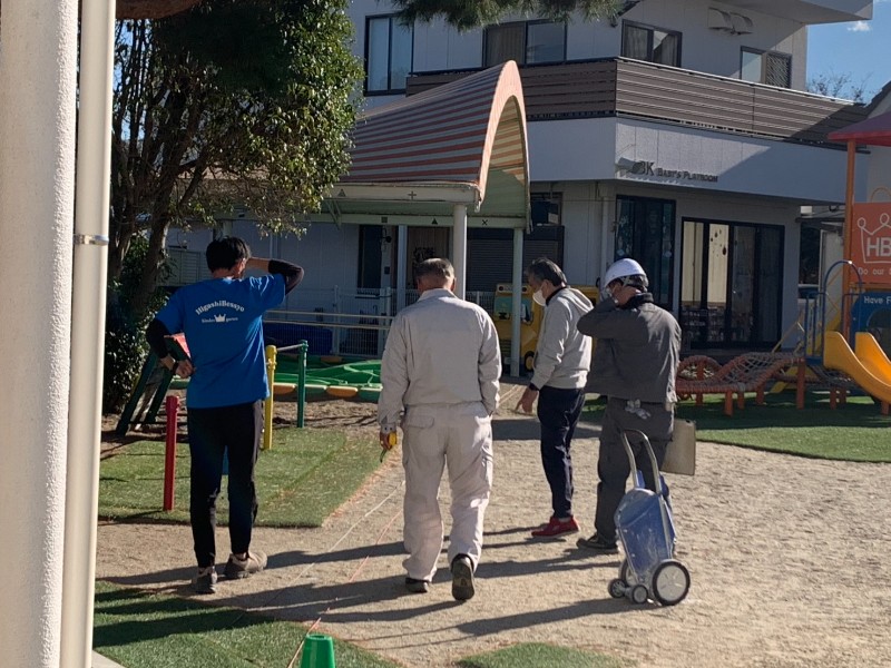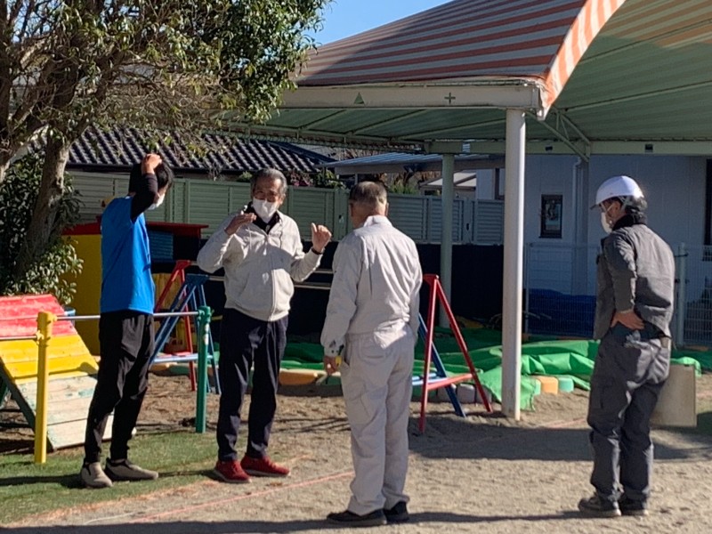 HBKKIDSが雨の日でもなるべく傘いらずで過ごせるように理事長先生も色々なアイデアを出しながら入念に打ち合わせ…