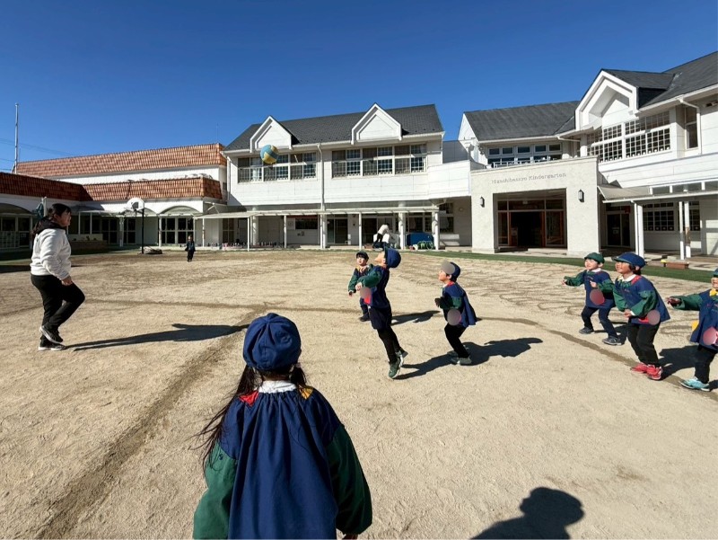 寒さが続いていますね…今日はお外遊びの一コマを!先生も混ざってドッジボールをしていました♪
