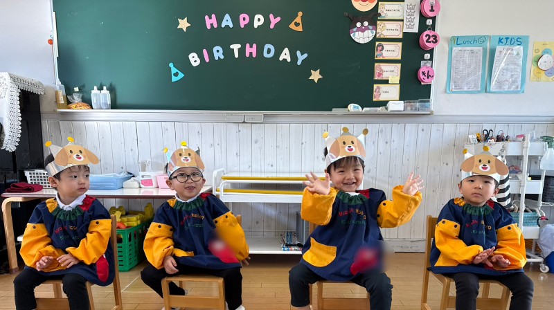 お友達や先生からたくさんのお祝いの言葉や歌のプレゼントでお祝いしました!