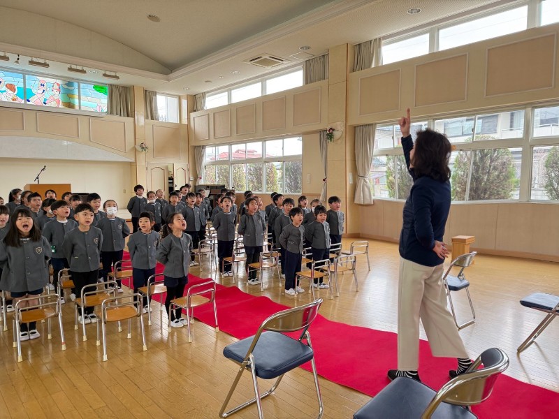 興味津々・・・ホールに飾ってあるひな人形を月曜日見に行こうね!ちょっと難しい歌も上手に歌えるようになってきましたよ♬
