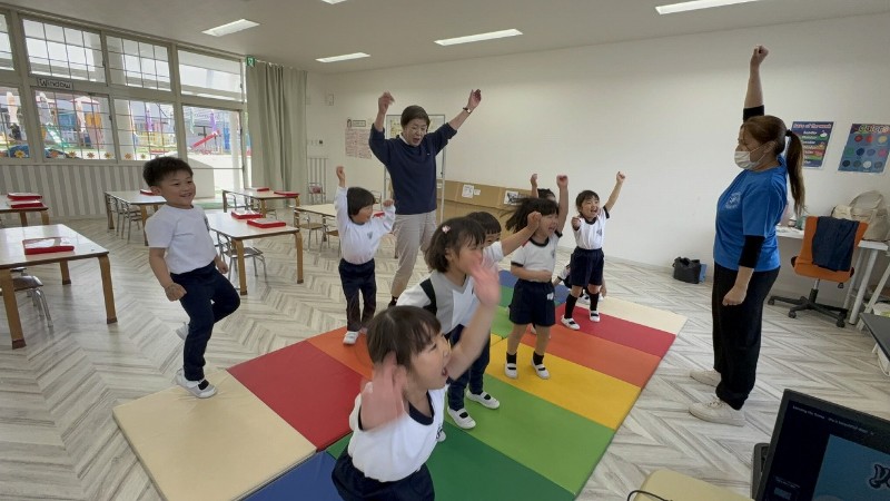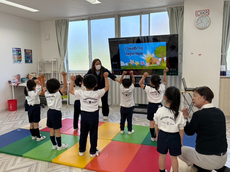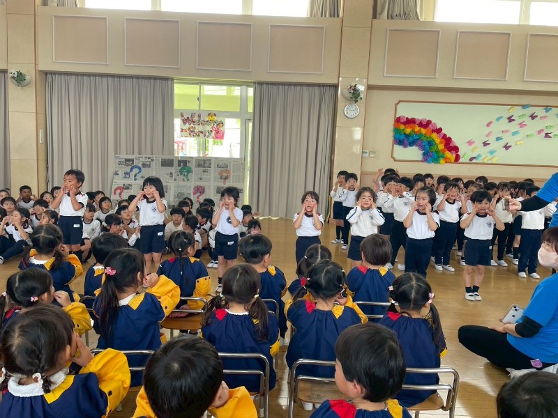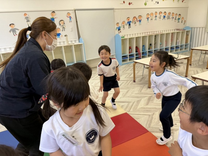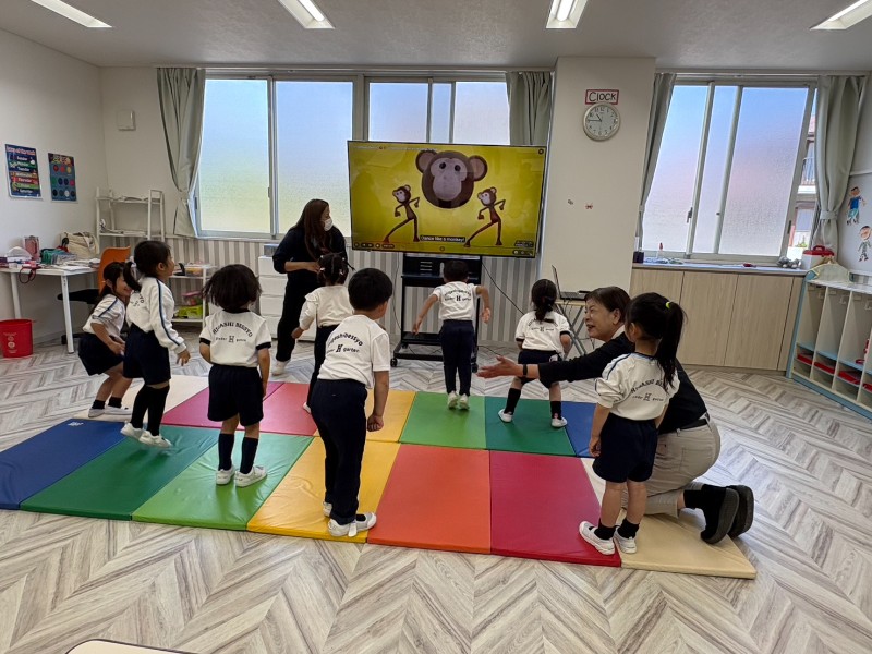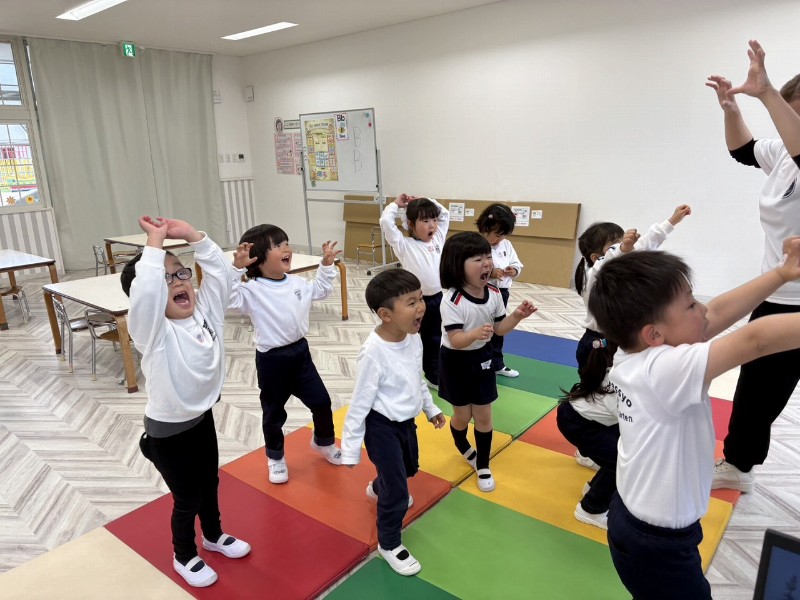英語クラスの学習の流れにも慣れ、モーニングダンスも元気いっぱい歌いながら踊り・・・