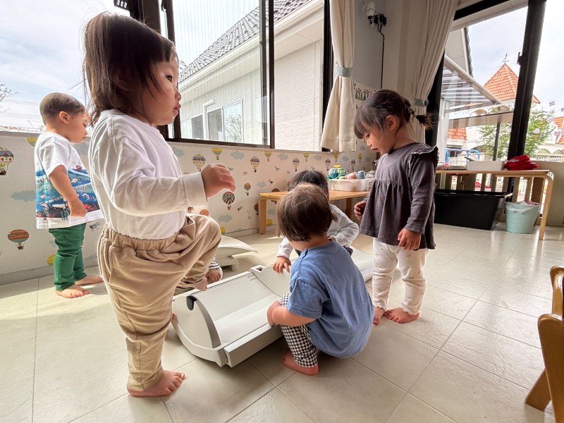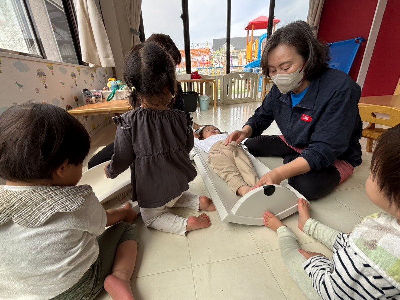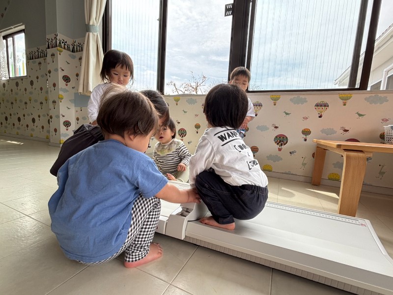 今日はみんなで身長・体重測定!!初めて見る測定器に興味津々の様子です♬