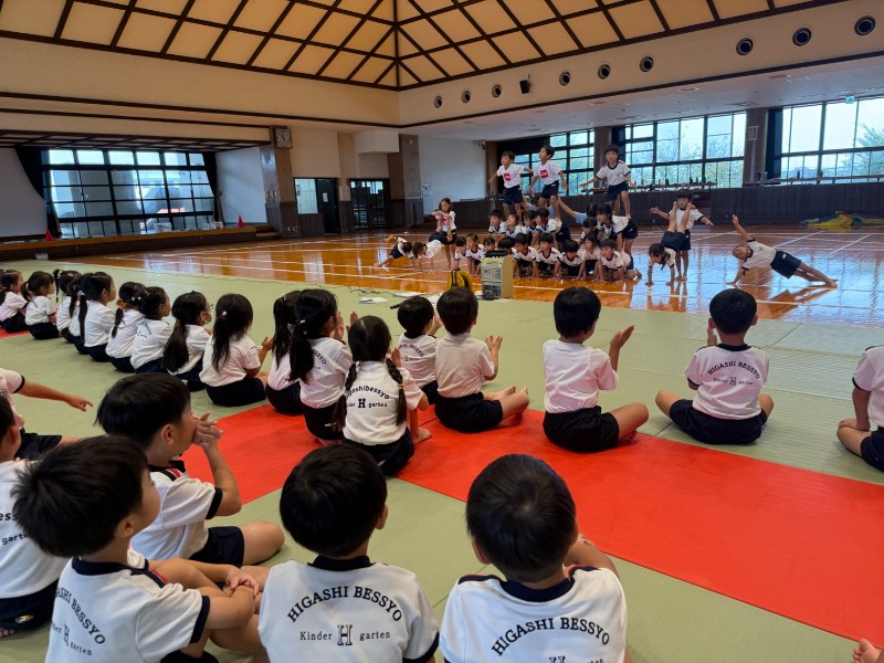 今日はなんと!1階は東別所幼稚園、2階はスマイル幼稚園というスペシャルDAY!!スマイル幼稚園のお友だちの演技を見せてもらいました!自分たちの演技とどんなところが違うか・・・どこがかっこいいか・・・更にやる気・競争心が芽生えたぞう組さんでした♪そしてその後は、園長先生とスペシャルタイム!!◯✖️ゲーム!!お題をダンボの耳でよーく聞いて、次々と出てくるお題に真剣に聞き学びながら楽しい時間を過ごしました♡