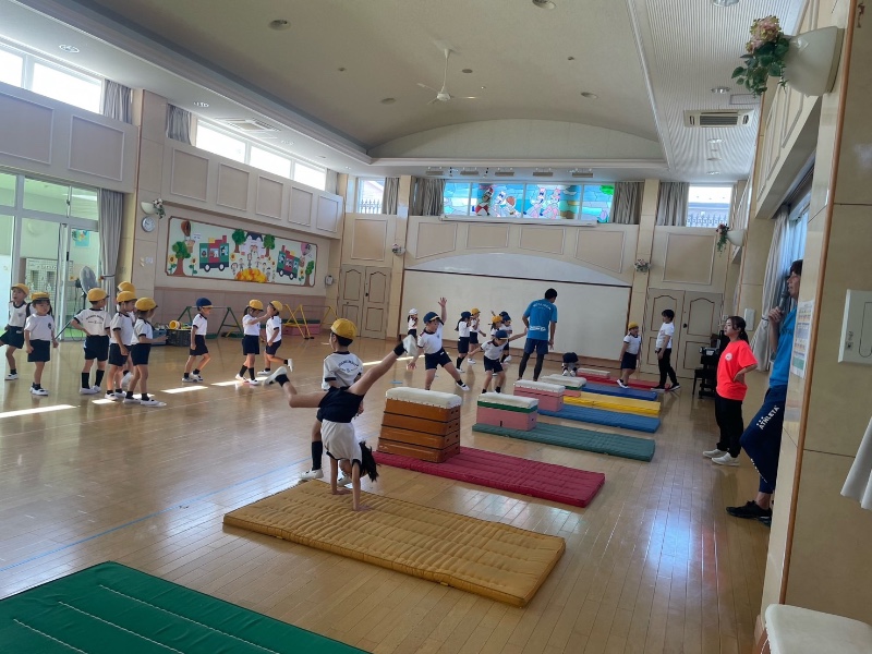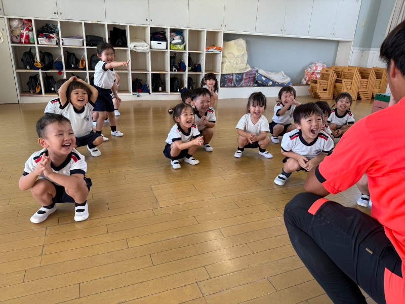 皆が楽しみにしていた体操教室!!「3・2・1!」先生の合図に合わせて、元気いっぱいジャンプ♪お友だちと一緒に体を動かすことを楽しみながら、笑顔で活動に参加している姿がたくさん見られましたよ♥️次の体操教室も楽しみだね!《ゆか》
