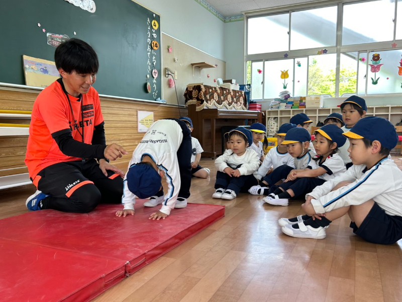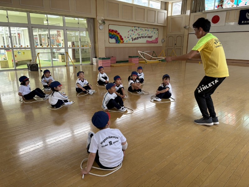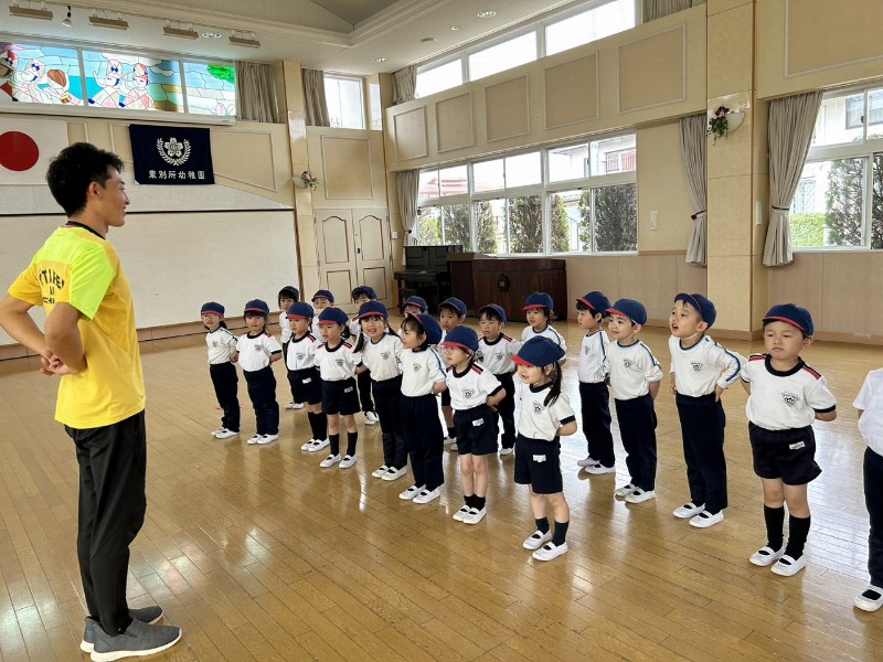 としや先生のお話をしっかりと聞き、うさぎ組さんの時の復習を見事クリアしました!元気いっぱい体操教室頑張りましたね☆目標に向かってみんなで頑張っていこうね!《こと》