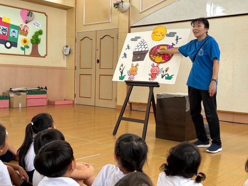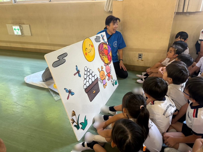 また、十五夜にまつわる3択クイズやみんなが楽しみにしていた大橋先生のパネルシアターを通して十五夜についての知識を深めました。