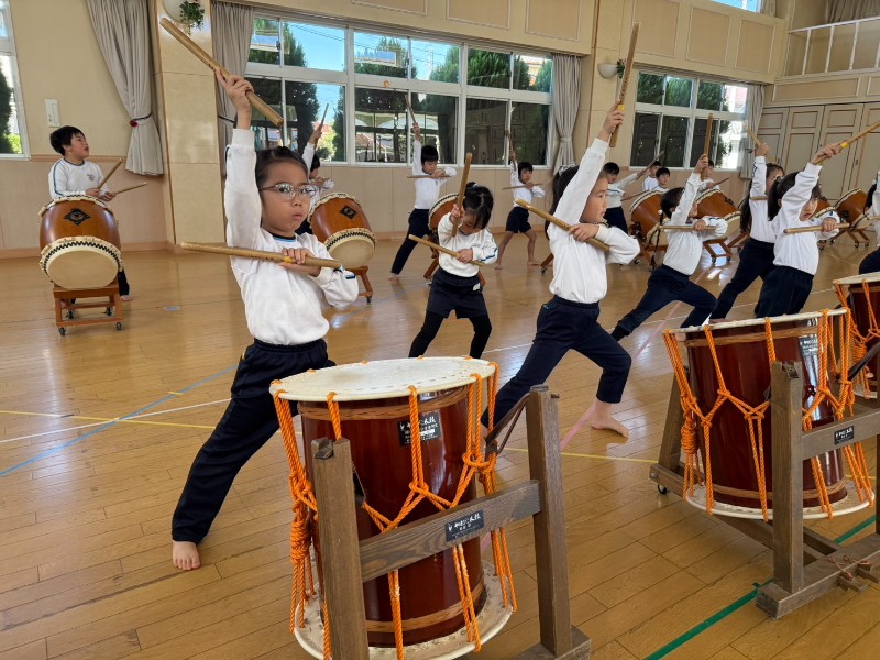 伸ばすときは伸ばす、膝を曲げるなど和太鼓のポイントを意識しながらみんな真剣に取り組んでいましたよ♪