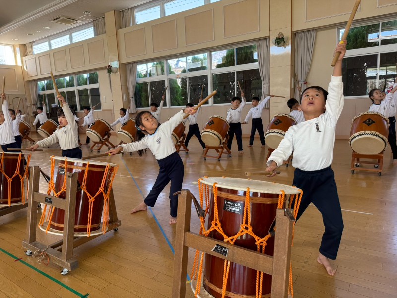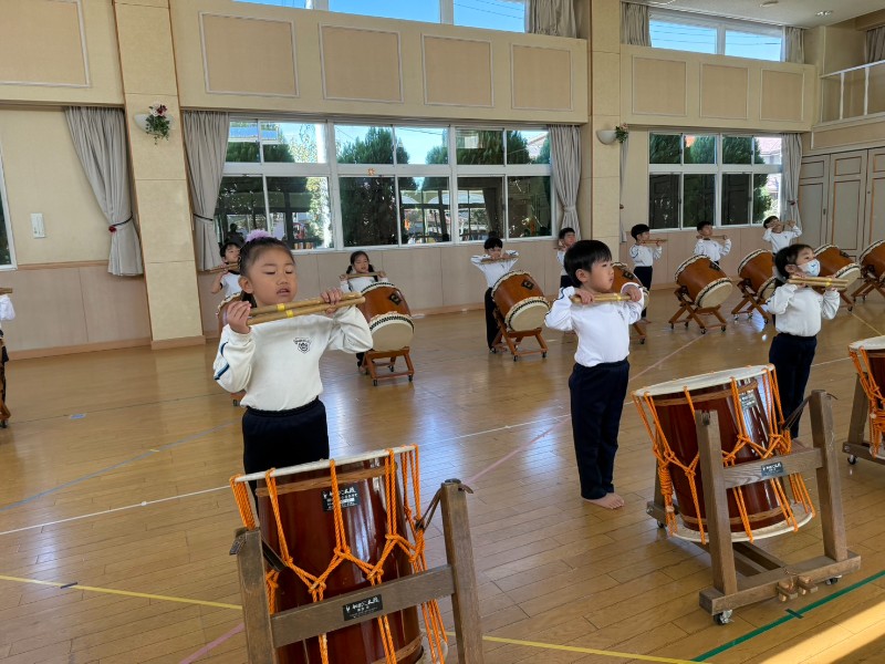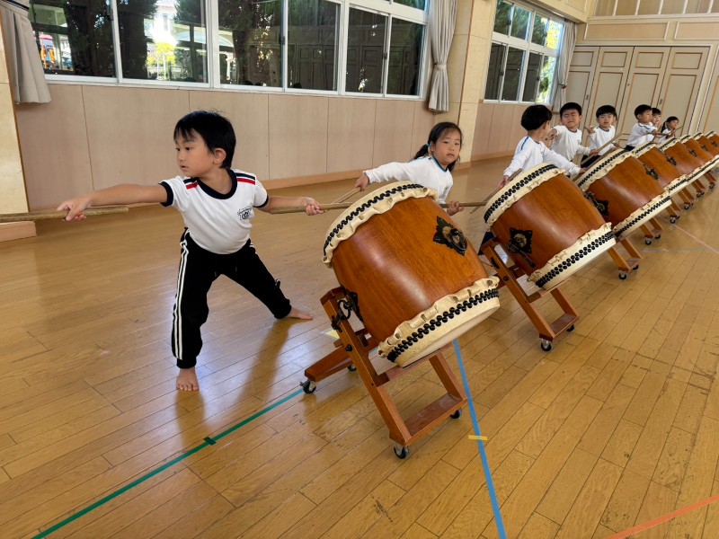 年中組からずっと憧れていた和太鼓の練習が始まりました!練習する前にはしっかり心を切り替え
