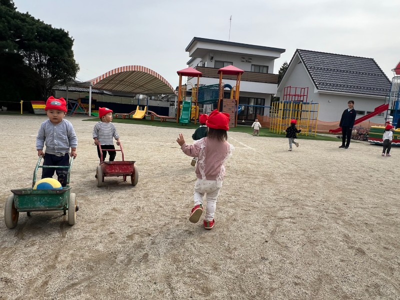 園庭いっぱいを使って戸外遊びが充実してきたようです!