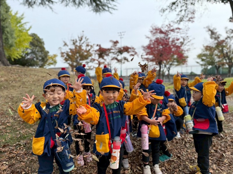 運動公園の木々も冬の準備をしていました❄︎沢山の落ち葉を使って秋を満喫!落ち葉のシャワーにみんな、大歓声でした!