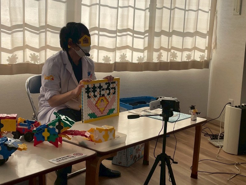 作り始める前に、まずは、LaQの種類を教えてもらったりヘビやLaQで作った紙芝居なども見せてもらいました!