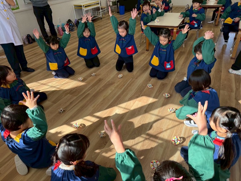 困っているお友達に優しく教えてあげる姿も見られましたよ❤最後には、全員でコマ回し大会を開催!!