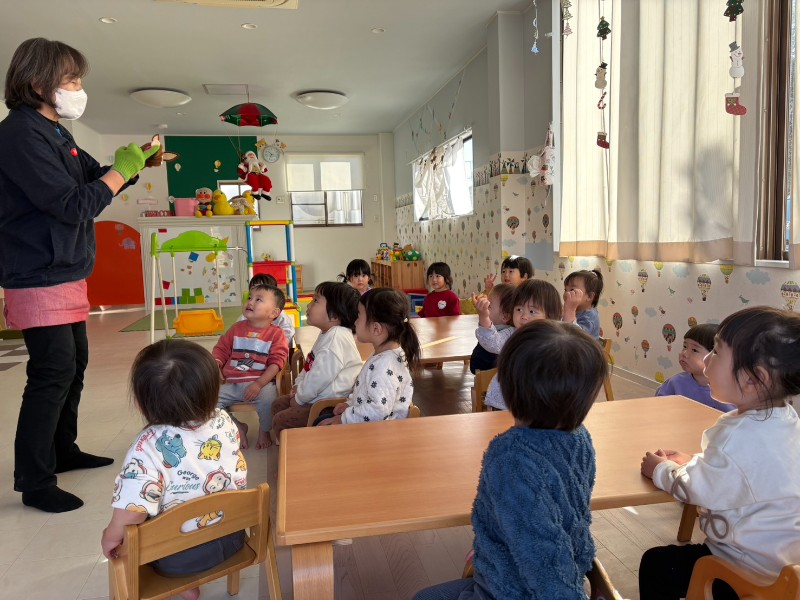 「サッとにげました」この手袋シアターを見るとみんな笑顔になります❤園庭遊びでもどんどんコミュニケーションが増えていっています♪