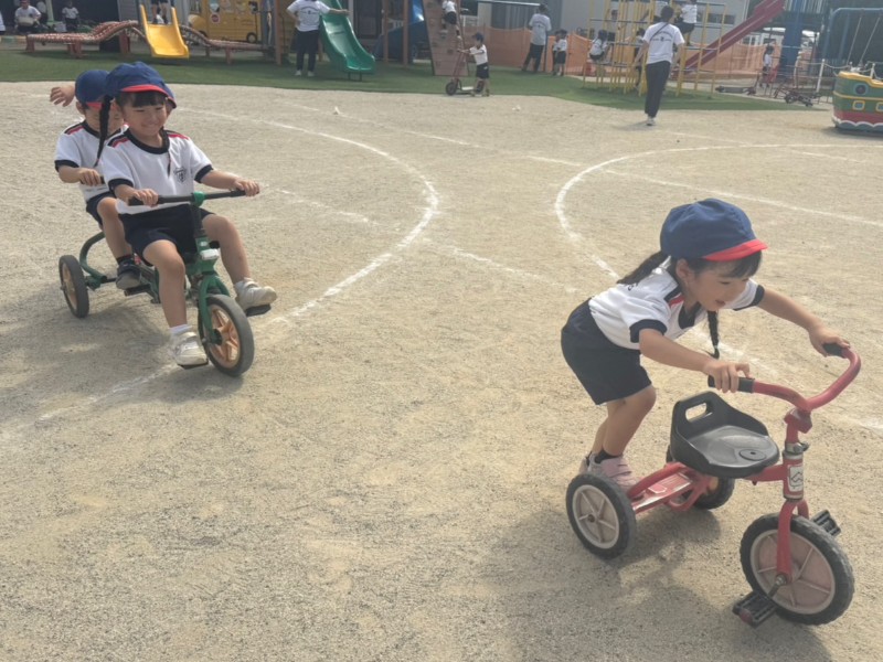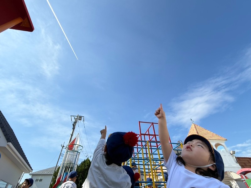 ☆園庭遊びDAY☆「今日は砂場で大きなお山を作りた~い!」「お兄さんと遊べるかな?」と靴を履くスピードがいつもより早く感じました(笑)遊んでいると空に飛行機雲が・・・「先生!なんで飛行機雲が出るんの?」と興味津々なお友達がいましたよ!ママとパパに聞いてみてね!パピー組さんも運動会練習を頑張っています☆彡一位を目指してゴールを目掛けて・・・「みんなが一位だね!」と優しいお友達が・・・頑張っているぱんだ組さんの旗を真剣に見ていました!!!「かっこいいね!」「すっごい上手だね」と拍手をしていました♥