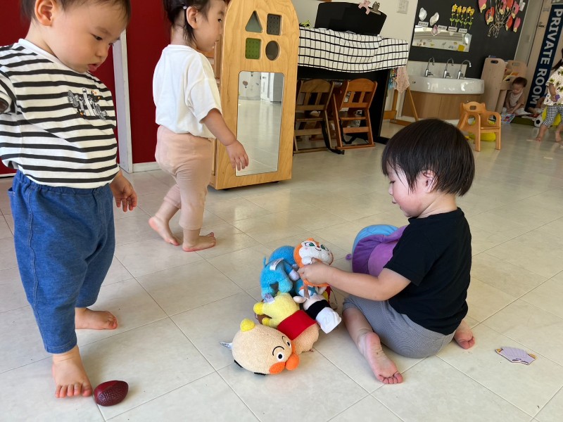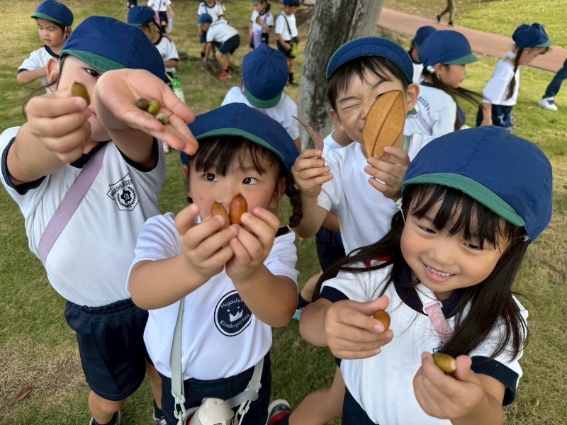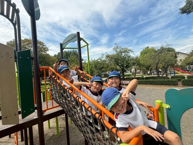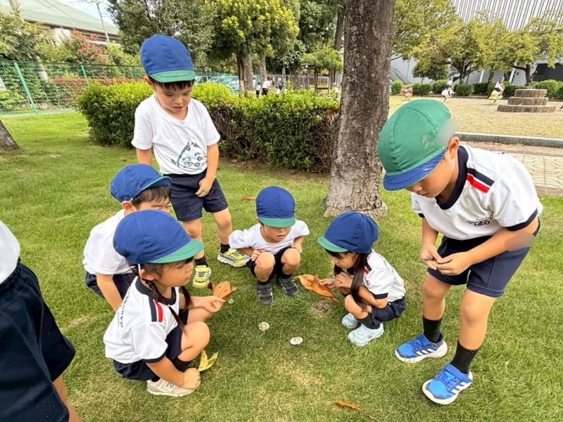 過ごしやすいお天気が続いていますね!今日は運動公園まで秋探しに行ってきました♬早速トンボを発見!!「この指とーまれ!」近くまで来たトンボにみんな夢中になっていました!そしてこのまま公園へ!思いきり身体を動かし、可愛い笑顔を見せてくれました(^▽^)❤「見て見て!!」葉っぱやどんぐり、きのこまで…!沢山の秋を見つけたので、お家の人にのお土産にしました❤楽しかったね!《はるか》