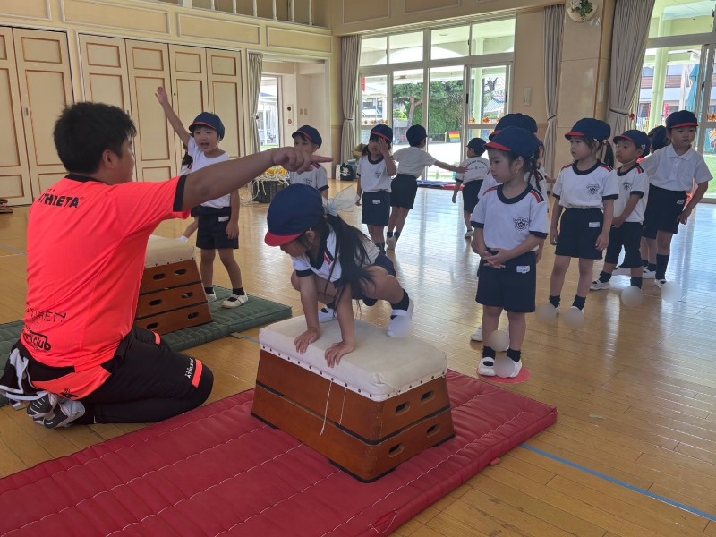 跳び箱のレベルがどんどん上がっているうさぎ組さん!!1段をクリアすると次は2段・3段にチャレンジ!!跳ぶ前には大きな声で「お願いします!!」元気一杯の声にみんなのやる気が伝わってきます♫PS.頑張っているみんなにご褒美!沢山遊んでリフレッシュです♪《ももか》