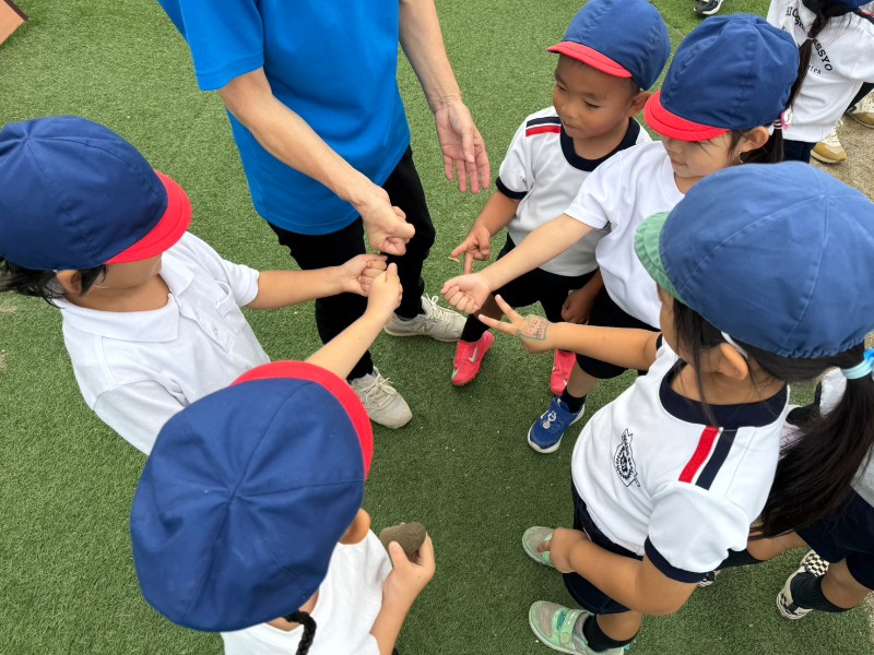 まゆみ先生とサーキットや組体操の最終確認!!前回見てもらった時よりもさらに成長していると褒めてもらい子ども達の姿勢からやる気を感じた年長職員でした。「できなくてもあきらめない」「全力でやる」まゆみ先生から教わったキーワードを心に刻みながら練習していると・・・