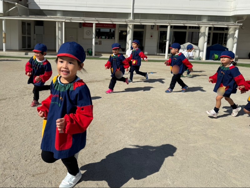 園庭が今日はなんと貸し切り♬身体を動かし放題★広い園庭でしっぽ取りゲームをしたり、