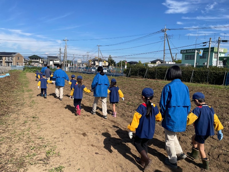 イベント盛り沢山の10月・・・今日は「さつまいも堀り」に行ってきました!大泉高校のお兄さんお姉さんにしっかりご挨拶をしてから