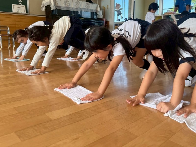 ぱんだ組さんの日課…それは雑巾掛けです!!毎日使っているお部屋に感謝の気持ちを込めて…!