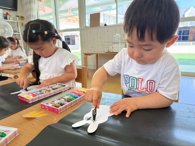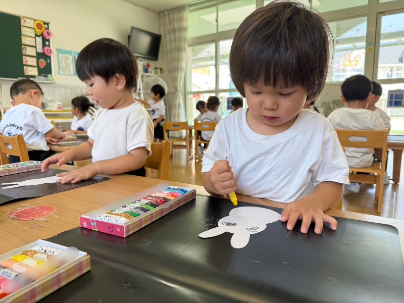 10月6日は十五夜!!今日はお月見製作をしましたよ!先生のお話をよく聞き、折り紙をちぎることにもチャレンジ☆難しいところも諦めずに頑張る姿が見られましたよ♥️完成が楽しみだね♪《ゆか》