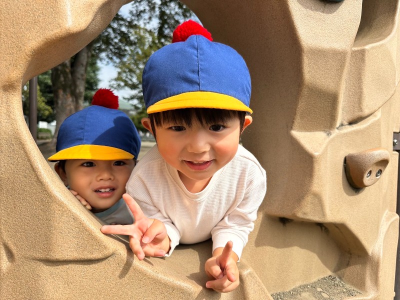 天気予報は曇りのち雨・・・おひさまも顔を出し、お散歩日和!運動公園の児童コーナーまでお散歩!!すべり台や複合型固定遊具で遊びました!可愛い笑顔がいっぱい、また行こうね♥️《ゆか》