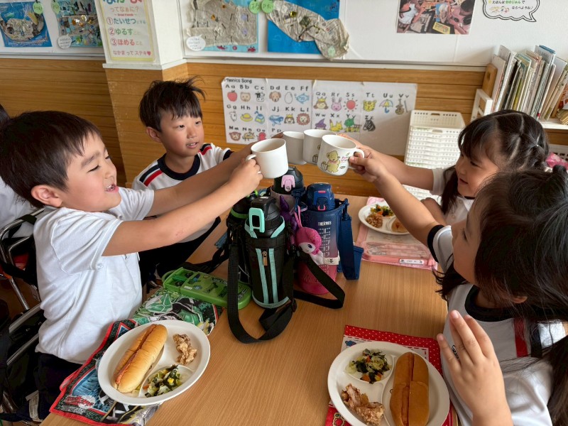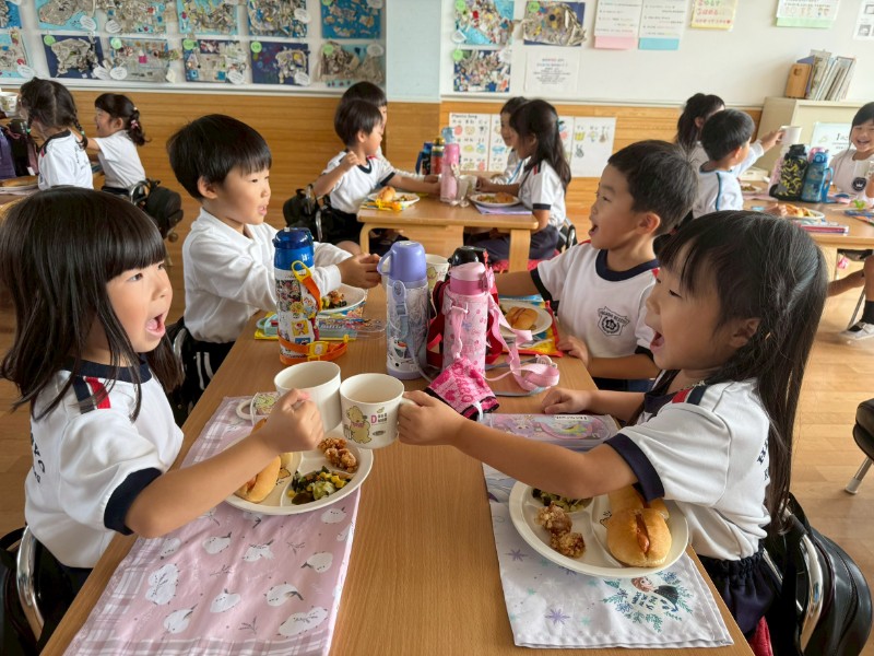 運動会を頑張ったご褒美!第1弾!!スバル公園に行き、たくさんの秋を感じて来ました♬公園に着くなり、みんなで仲良くダッシュ!色んな所にたくさんのどんぐりが落ちていて、子ども達もテンションMAX!!「僕が1番・私が1番多く拾うぞ!」と意気込んでいました(^^)ペットボトルがいっぱいになるまで拾いましたよ♬落ち葉を拾っていたら、ハート型の落ち葉が・・❤次は、みんなでおやつを持ってお出掛けしようね!P.S今日の給食はスペシャルメニュー❤みんなで「かんぱーい!♬」みんなの大好きなものばかりでとっても美味しかったね!!