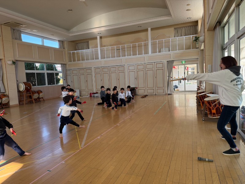 鬼から逃げるのもとても上手になりましたね!鈴木先生に感謝の気持ちを込めて元気いっぱいのご挨拶!!