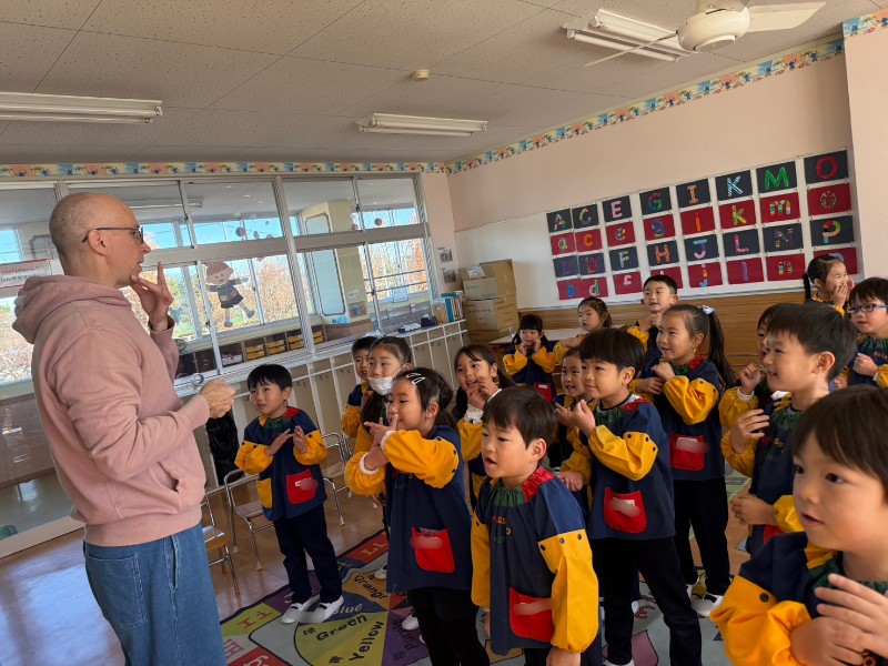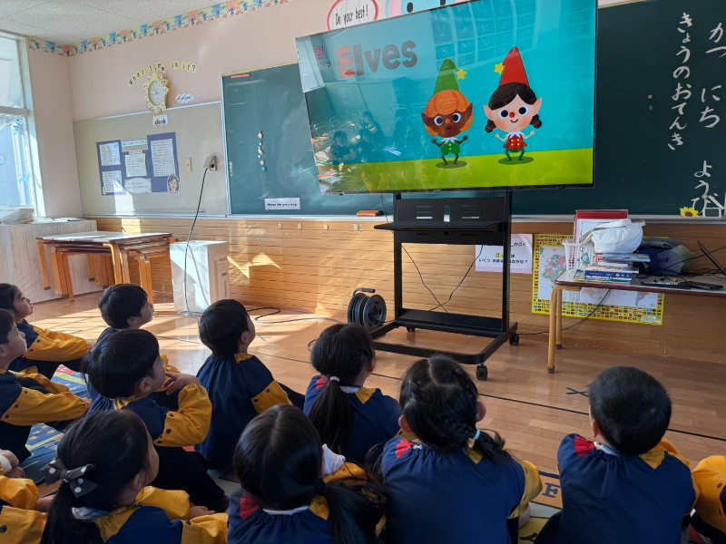「声が全員出ていて最高!」「どんどんかっこよくなっていているよ」と褒めてもらい子ども達のやるきは最高潮です!!二学期最後の英語教室