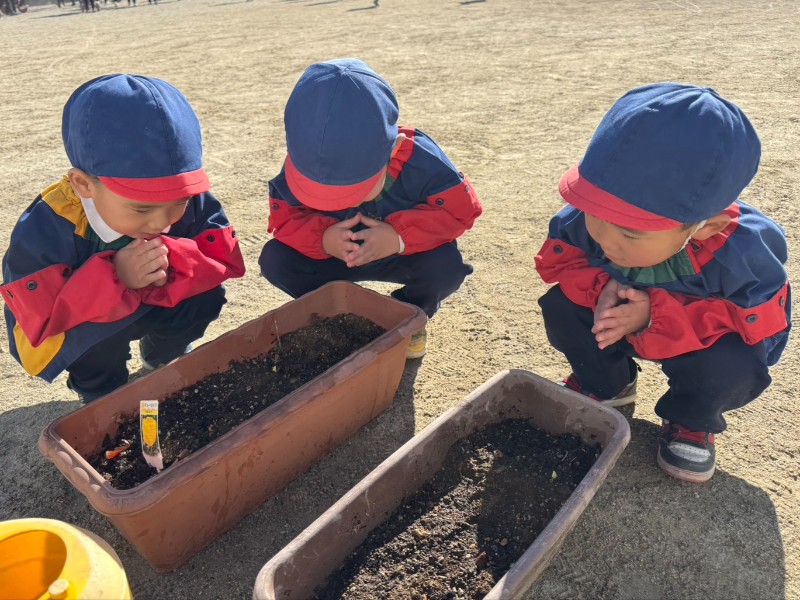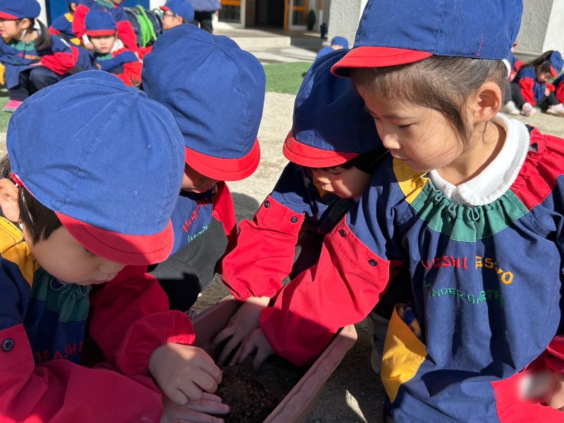 今日はチューリップの球根を植えました♪しっかりとお話を聞いて・・・