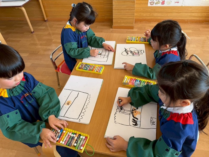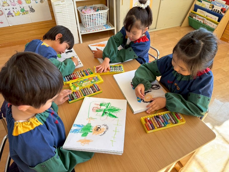 こんなにもたくさんのお仕事が・・!パパやママのお仕事も思い出して、「ママは〇〇やってるんだよ!」「パパは〇〇!」こんな会話もたくさん聞こえてきました!!その後は、自分がなりたいものを絵に描いてみましたよ♬