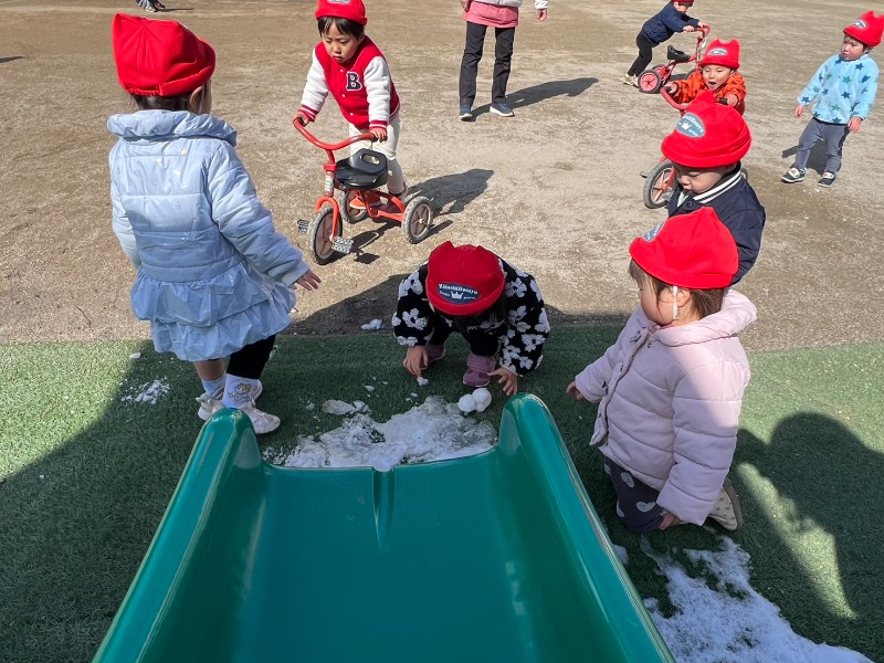 園庭の隅に残っていた雪を見て名残惜しそう・・・