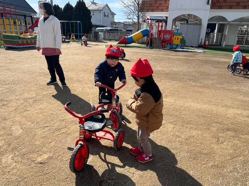 昨日の北風はどこに行ったのか・・・と想うほど穏やかな日でしたね!数日ぶりの園庭遊びを満喫しました♬