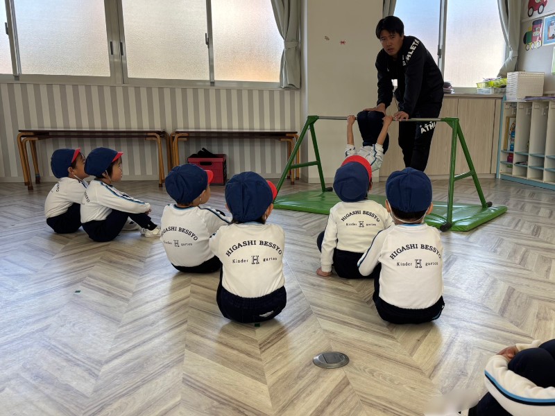 今日の体操教室は「コウモリ降り」に挑戦!!ゆうた先生の説明をよーく聞いてLet's try!!!