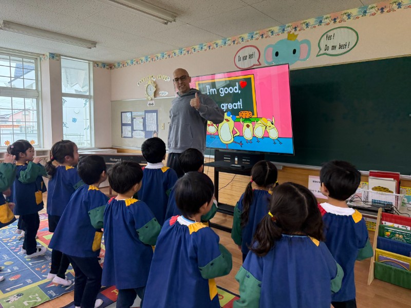 英語で自己紹介も練習中です!ぱんだ組での英語教室もあと2回・・ボブ先生と最後まで思い切り楽しもうね!♡