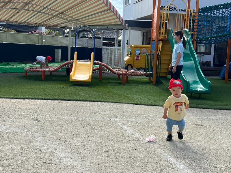 そんな言葉の通り・・・季節は秋へと移り変わっていますね。やっと外遊びを楽しめる季節がやってきました!!朝、まだ誰もいない園庭を貸し切り状態♪