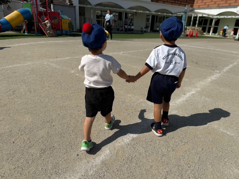 遊び終わったあとは・・・「一緒に片付けよう!」「教室まで行こう!」と声をかけ合う、思いやりのある姿も♪