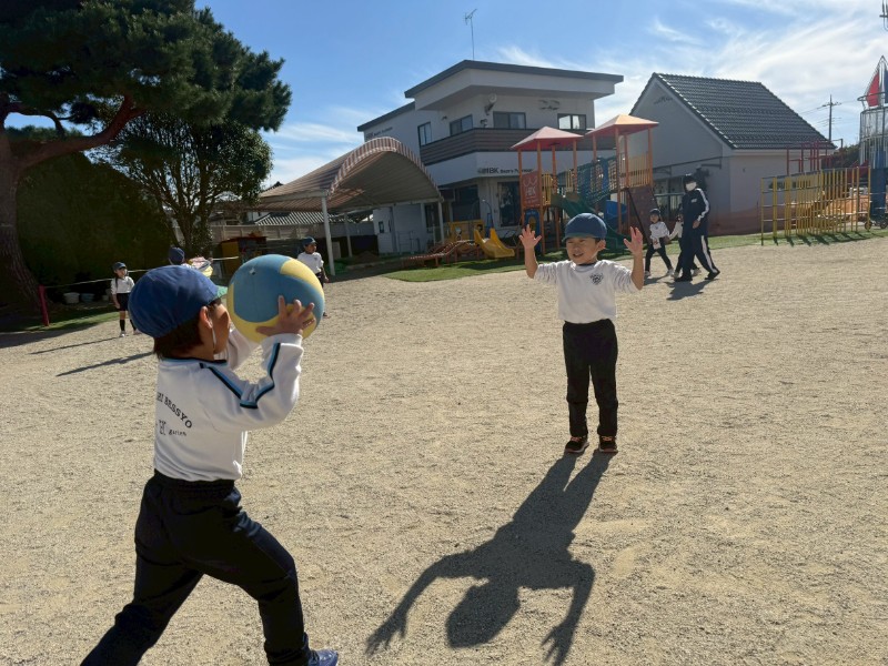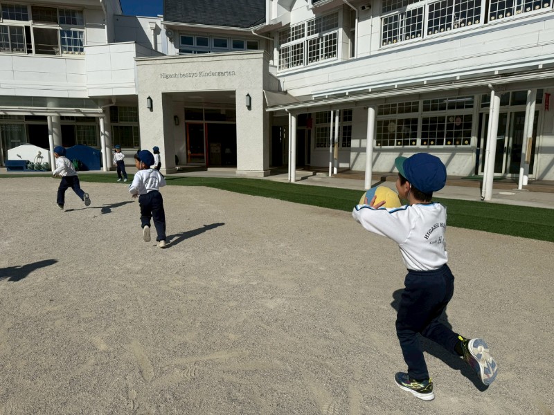 今日はお外で鬼ごっこ♬前回とは違い、「ボール当て鬼ごっこ」