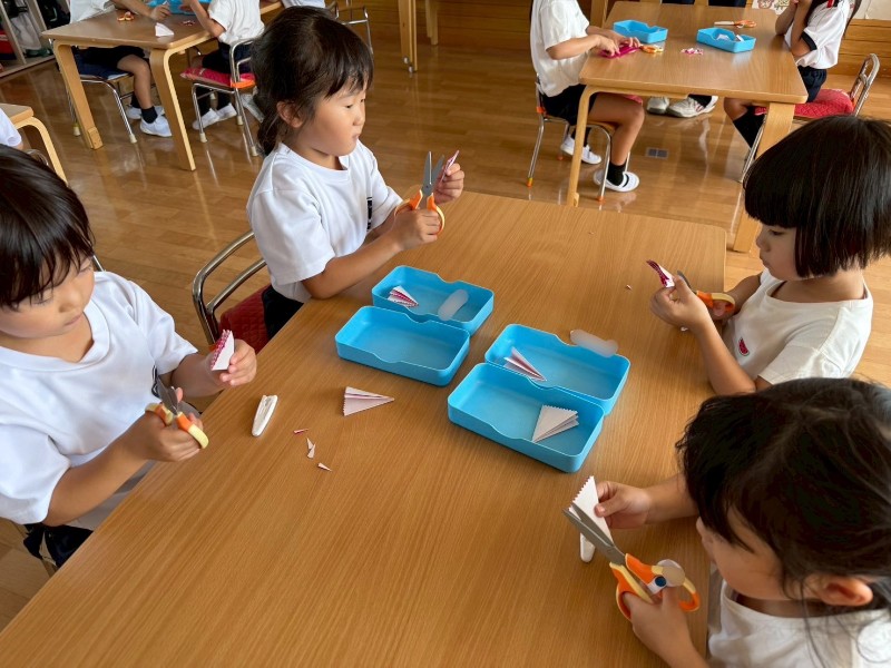 今日は折り紙製作を行いました♪自分の事だけでなく、困っているお友達にも積極的に声を掛ける姿が…!さすが、ぱんだ組さんですね❤三角や四角に折ったり…はさみを使ったり…ゆっくり開いてみると綺麗なお花が咲きました!!大好きな人へのプレゼント!!完成が楽しみです(^▽^)PS.シアタールームに大きなテレビが導入されました!今日から英語教室もスタート!二学期も頑張ろうね!《はるか》