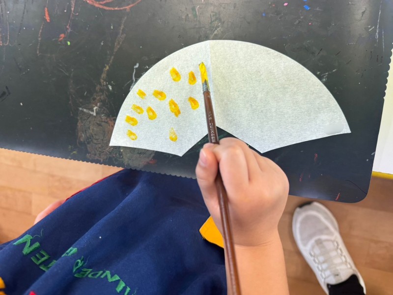今日はにじみ絵に初挑戦!!濡らした紙に絵の具をちょんちょん・・・この制作はあの大好きな人に・・・♡みんな一生懸命取り組んでいます!P.S.ボブ先生との英語レッスン!新しい曲にもチャレンジしましたよ♪《ももか》
