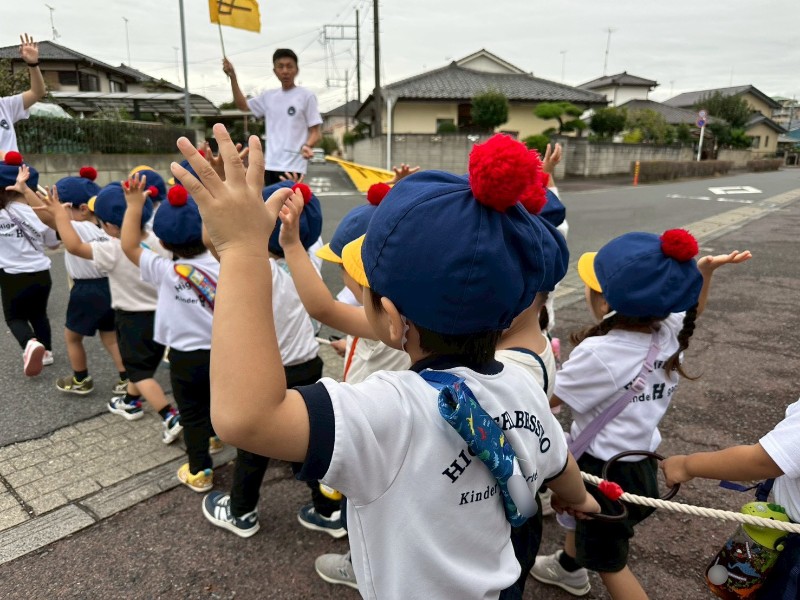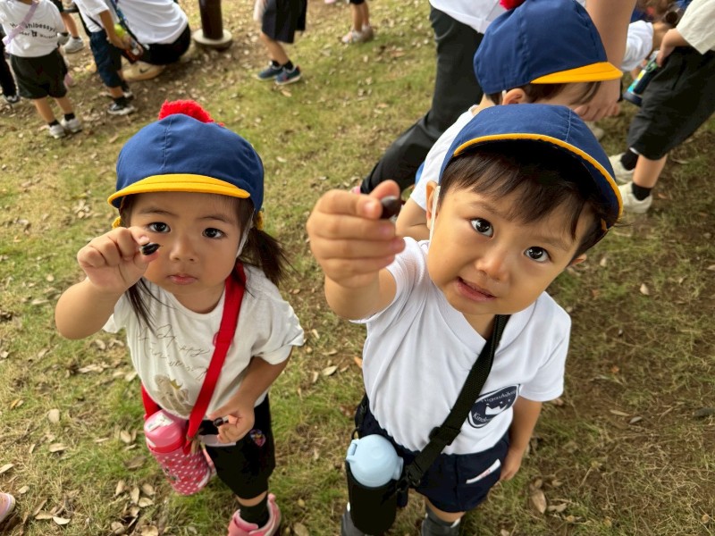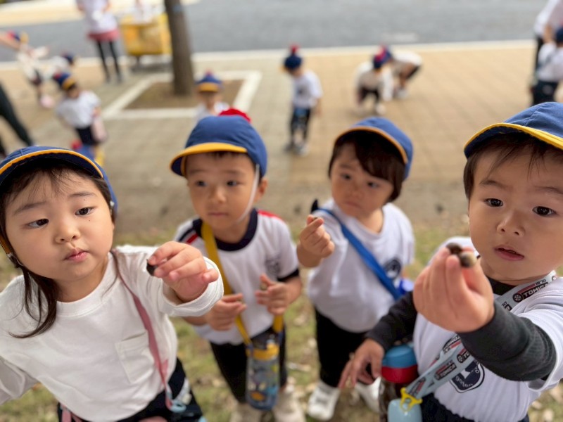 歩いているご近所の方にご挨拶ができたり、坂を登ったり下ったり、お散歩ロープをしっかり握り元気に歩けましたよ!やっと辿り着いたどんぐりの木…「大きなどんぐりみつけたよ」「このどんぐりなんかまっくろだね?」とたくさんの発見が出来ました!