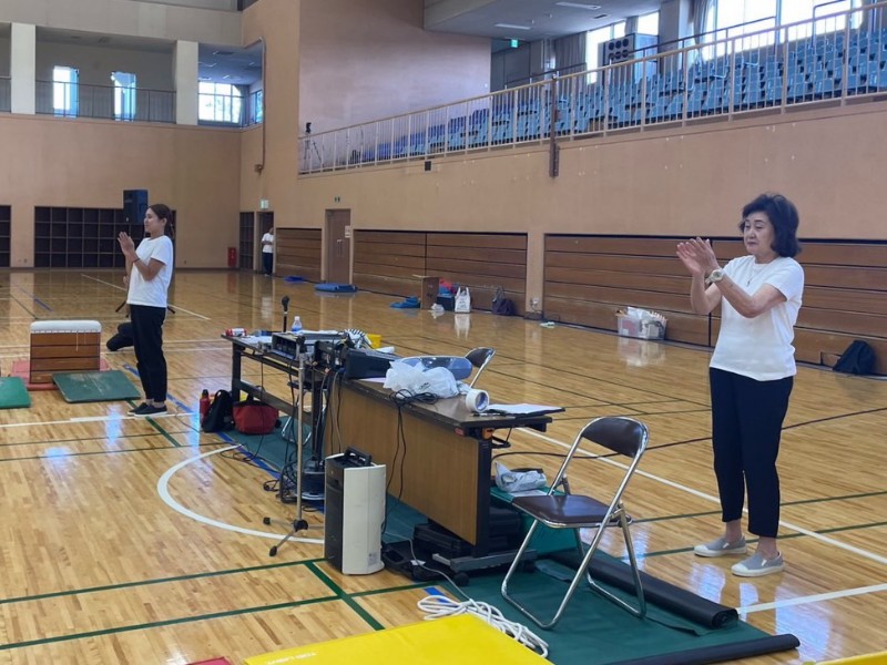 体操教室で、ジャンボ先生に組体操を披露!!