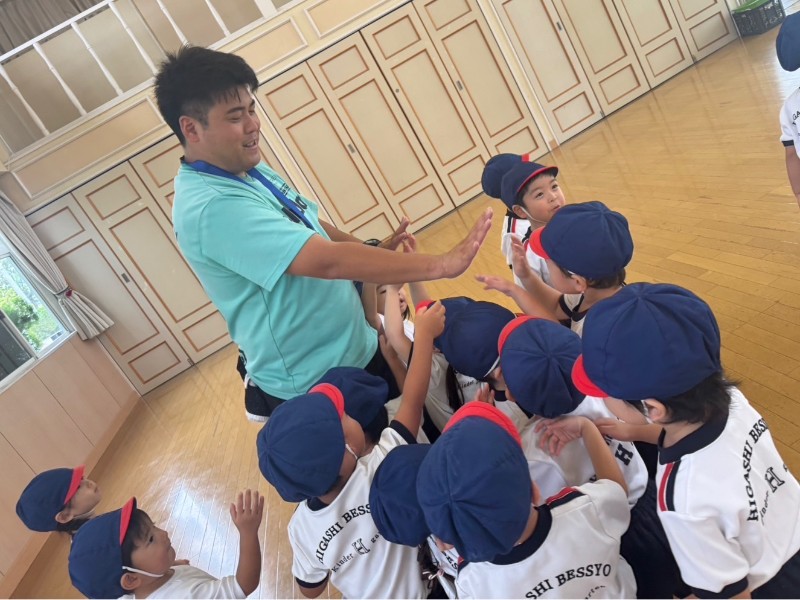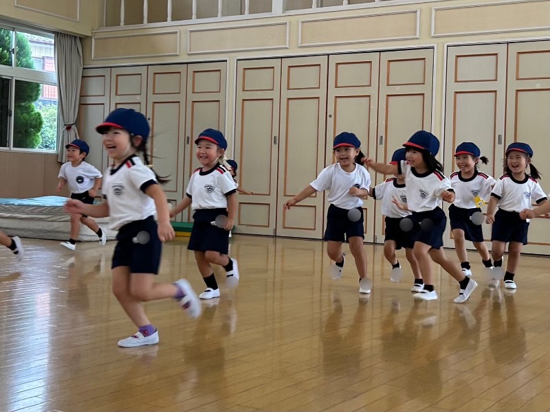 「跳ぶときのポイントは?」「おばけの手!!」しっかり覚えていました♪その後は鬼ごっこ!