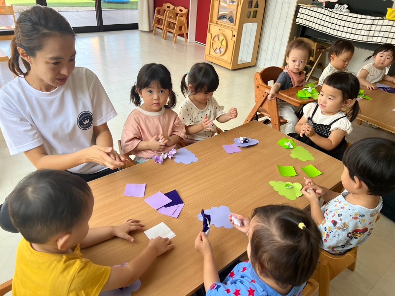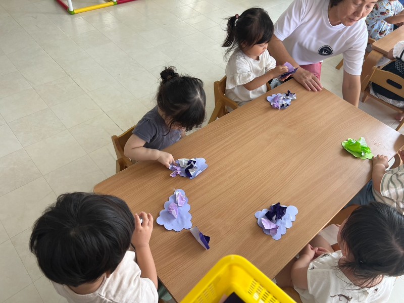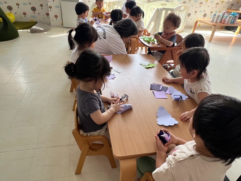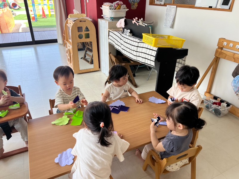 先生のお話をよく聞き、折り紙をちぎることにもチャレンジ☆