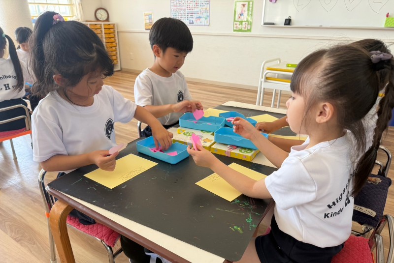 この制作はあの大好きな人に・・・♡みんな一生懸命取り組んでいます!P.S.ボブ先生との英語レッスン!