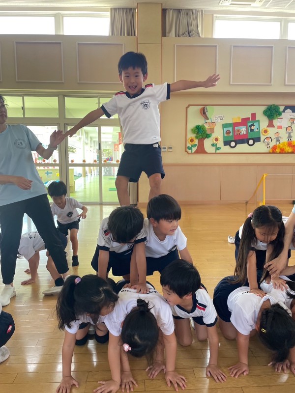 お友だち同士で「素敵なの出来たね」「届くのが楽しみだね!」などの可愛い会話が聞こえてきました❤完成まであともう少し!PS,昨日やってみた組体操の技にチャレンジ!大事なポイントを確認しながら出来ました♪