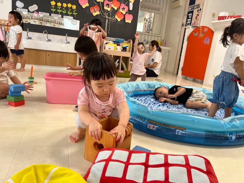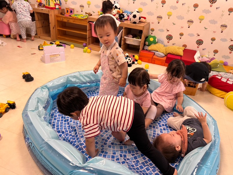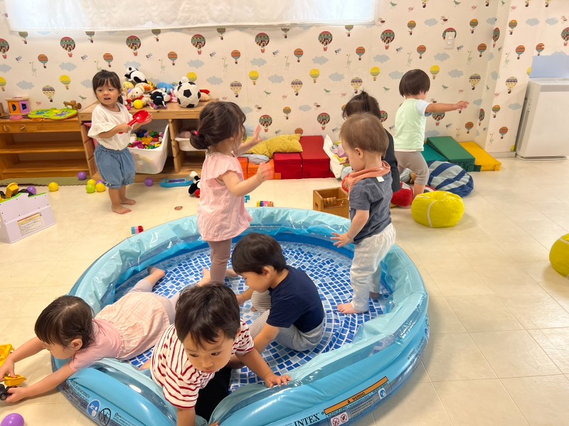 どんな作品に仕上がるかな❤大好きな水遊びも今日はお休み・・・そこで教室にプールを置いたら